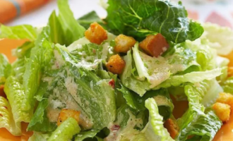 Meestal is de meest voedzame Caesarsalade de dressing die mayonaise bevat. Er wordt voorgesteld om mayonaise te vervangen door zure room, dit vermindert het caloriegehalte van het eindproduct. Zo'n gerecht is zelfs toegestaan voor mensen met een dieet.