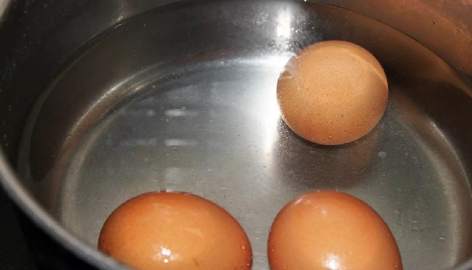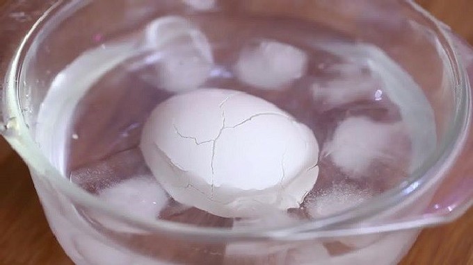 - Breng het gezouten water aan de kook. Leg het ei, aan de brede rand doorboord, in een pan. Na 20 sec. haal de pan met het ei van het vuur en na 1 min. haal het ei uit het kokende water en laat het 15 minuten afkoelen. in koud water.