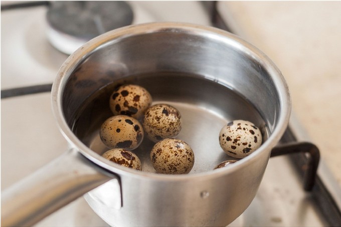 - Was en droog de groenten, verwijder de films van de filets, spoel af. Kook een ei in gezouten water (precies 9 minuten na het koken). Giet in koud water, klop in de schaal (dit zal helpen om de eieren in de toekomst gemakkelijk te pellen). Het eiwit kan elders worden gebruikt, de dooier kan voor de saus blijven.