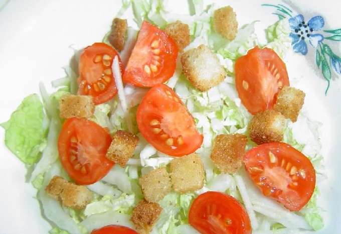 Voor Caesar kun je een budgetalternatief vinden voor ijsbergsalade - dit is Chinese kool. Het smaakt net zo lekker als slablaadjes en van de rest kun je heerlijke koolsoep maken.