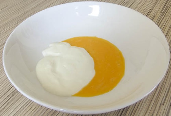 - Daarna komt de saus. Meng hiervoor in een aparte container de yoghurt zonder toevoegingen, scheid en gooi de dooier van het kippenei erin.