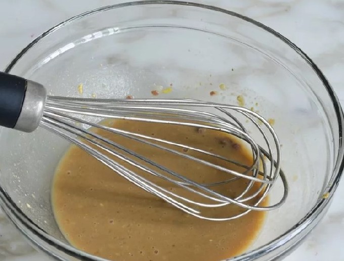 - Voeg je favoriete kruiden toe aan de dressing, evenals een beetje gekoelde kippenbouillon.