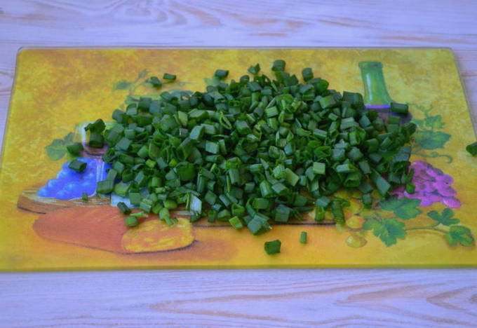- Spoel een bosje groene uien, hak ze fijn genoeg en doe ze in een pan met zuring.