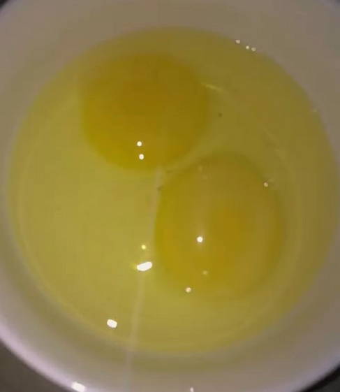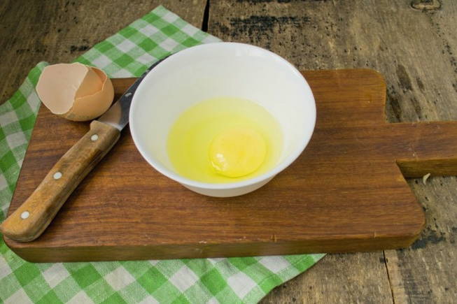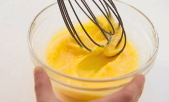 Verwijder op dit moment de kippeneieren uit de schaal en klop met een garde tot een homogene massa is verkregen.