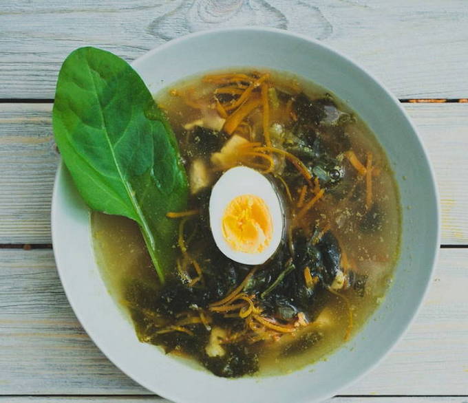 Snelle en gemakkelijke zuringsoep met ei en stoofvlees