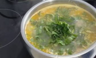 En doe de zuring helemaal op het einde in een bijna kant-en-klare soep. Laat het vijf minuten koken en laat het dan trekken en genieten van de aroma's. In de tussentijd kun je verse kruiden hakken om te serveren.
