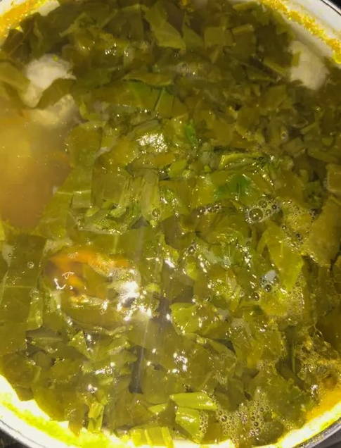 - We sturen de gehakte ingrediënten twee minuten aan de kook in de kokende soep. Voeg wat zout toe en zet het vuur uit.