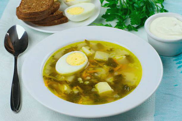 Stapsgewijs recept voor het maken van zuringsoep met vlees en eieren