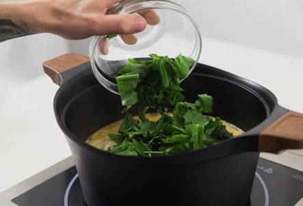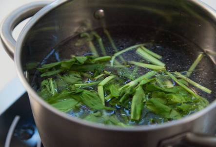 En doe de zuring helemaal op het einde in een bijna kant-en-klare soep. Laat het vijf minuten koken en laat het dan trekken en genieten van de aroma's. In de tussentijd kun je verse kruiden hakken om te serveren.