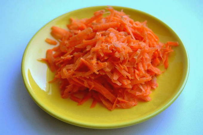 - Was de wortelen, schil de bovenste laag met een dunschiller en snijd in dunne reepjes.Het is beter om het niet op een rasp te raspen, want in een uur in een multicooker kan het erg gekookt zijn.