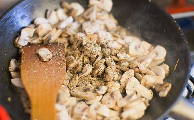 - Champignons met kruiden bakken tot ze gaar zijn.