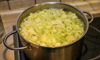 - We verplaatsen het frituren naar de koolsoep, zout het gerecht naar smaak, koken nog eens 15 minuten en zetten het fornuis uit.