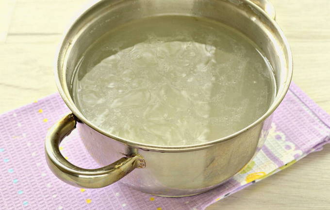 - Spoel de kip grondig af. Giet de benodigde hoeveelheid water in een pan en leg het vlees erin. We wachten tot de bouillon kookt. Daarna laten we het water weglopen en herhalen we het proces opnieuw.