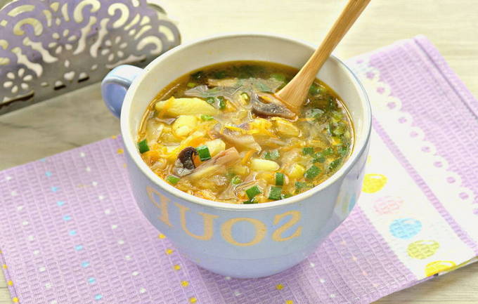 Verse champignons in combinatie met kip, aardappelen en gegrilde groenten geven de koolsoep een ongelooflijke smaak. Specerijen en groene uien zullen een speciale scherpte toevoegen.