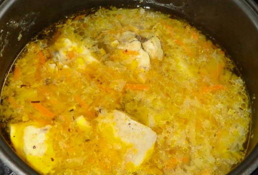 Shchi in een slowcooker blijkt erg lekker te zijn. Als je wilt dat ze rijker zijn, laat je de kippenhuid tot het einde van de kook en haal je hem dan uit de afgewerkte schaal.