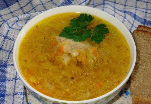 Verse koolsoep met kip volgens klassiek recept