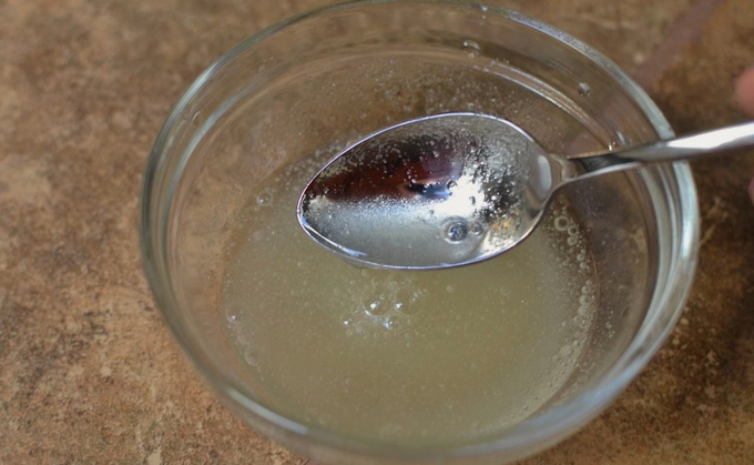 - Los 15 gram gelatine op in een half glas water en laat het zwellen (ongeveer 25-30 minuten) als de gelatine goed opzwelt, moet het opgelost worden in een waterbad. Voeg vervolgens een half pakje mayonaise toe aan de container met gelatine en meng grondig tot de ingrediënten volledig gemengd zijn.