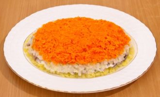 De vierde laag is een heldere en zoete wortel, die, net als alle voorgaande ingrediënten, moet worden ingevet met een laag mayonaise.