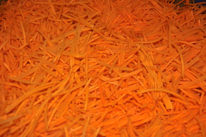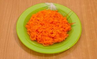 Wortelen moeten ook van de gekookte schil worden geschild en op een middelgrote of fijne rasp worden geraspt.