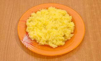 - Terwijl de groenten bakken, kun je, om geen tijd te verspillen, 5 hardgekookte eieren koken. Als de eieren klaar zijn, dompel ze dan in koud water. Deze eenvoudige truc helpt je bij het schoonmaken van eieren: de schaal wordt zonder problemen gescheiden. Rasp eieren op een fijne rasp.