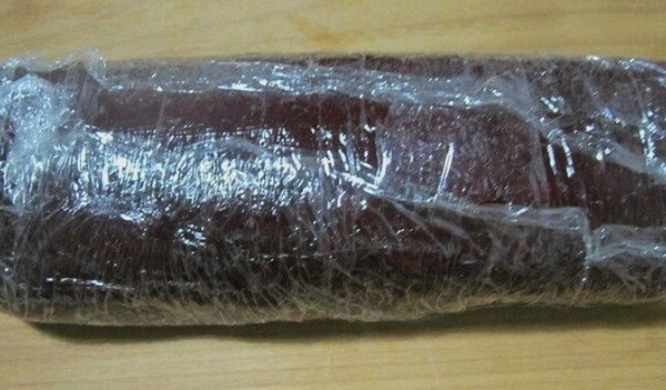 - Het meest cruciale moment komt - het draaien van de rol. Wikkel een uiteinde van de salade voorzichtig in huishoudfolie. Rol de hele salade geleidelijk, laag voor laag aan, tot een rol. Wikkel het in plasticfolie en zet het 3-4 uur in de koelkast. Gedurende deze tijd heeft de salade de tijd om te weken en zullen de lagen aan elkaar plakken met honing.