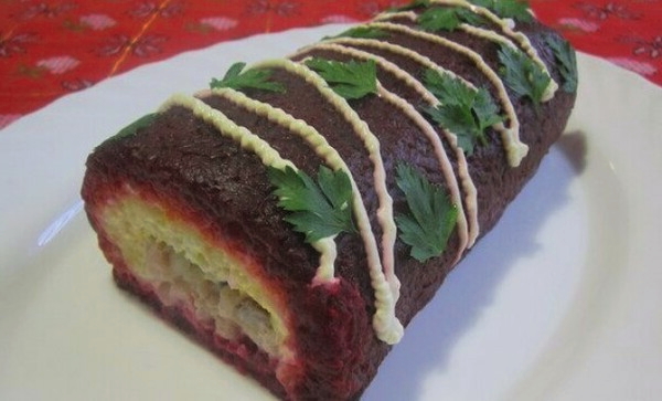 Haring onder een bontjas in de vorm van een rol is een zeer originele en interessante optie om ieders favoriete salade te serveren. Een rol "bontjas" is niet slechter dan zijn tegenhanger uit een slakom. Probeer het en zie het zelf!