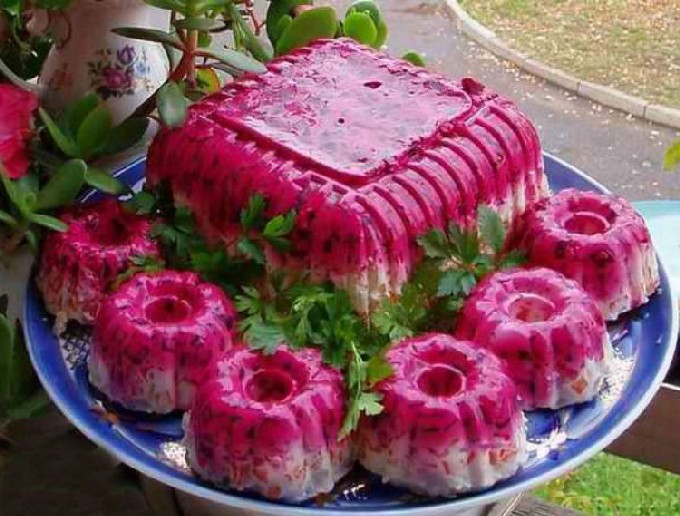 Bijna iedereen, zonder uitzondering, houdt van haring onder een bontjas. We brengen een enigszins ongebruikelijk recept onder uw aandacht waarmee u ervoor kunt zorgen dat de salade op het bord niet uit elkaar valt.Het geheim zit hem in de gelatine die er deel van uitmaakt. Interessant? Laten we dan beginnen met koken.