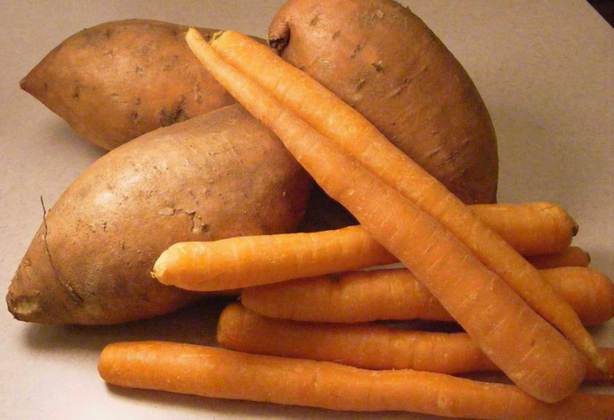 - Aardappelen en wortelen heel goed afspoelen onder stromend water en koken tot ze zacht zijn. Wees voorzichtig met deze groenten, ze koken veel sneller dan bieten en kunnen gewoon uit elkaar vallen als ze te gaar zijn. Als zowel de wortelen als de aardappelen gaar zijn, giet je het water af en leg je ze op een bord om verder af te koelen.