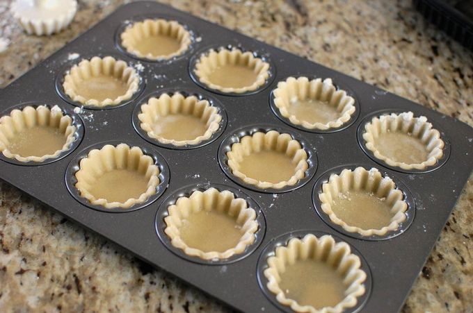 - Vet de taartvormpjes in met olie en verdeel het gekoelde aardappeldeeg er gelijkmatig over. Zet de taartjes 20 minuten in de oven tot ze een mooie gouden kleur krijgen.