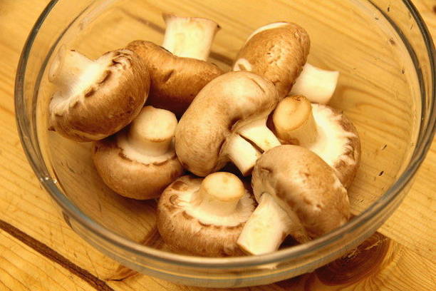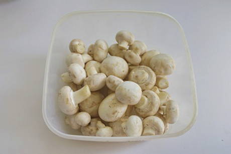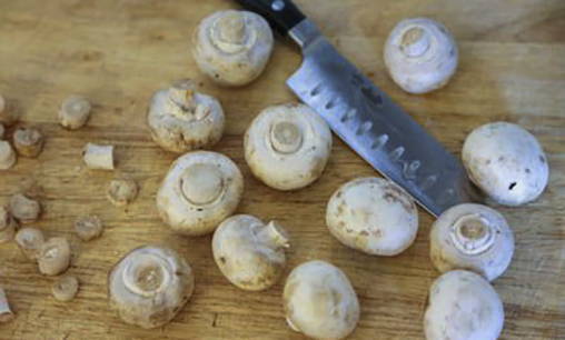 Was de champignons, snijd de poten af.