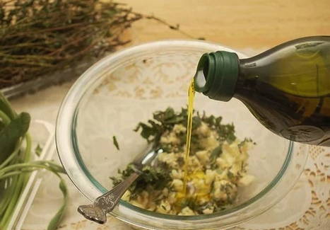 - Meng in een kom gehakte kruiden, knoflook, zout, gemalen peper en een paar eetlepels olijfolie.
