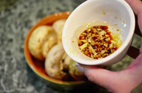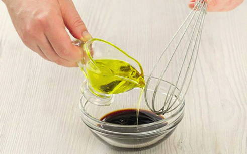 - Combineer plantaardige olie en sojasaus.