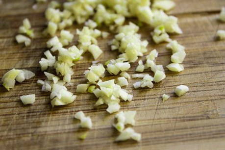 - Pel en hak de knoflook.