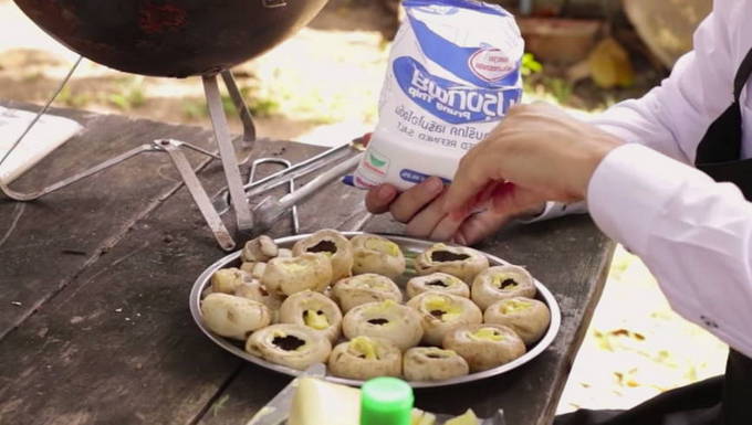 - Ontzettend lekkere champignons met zure room op de grill