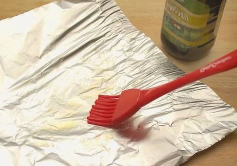 - Vet een vel folie in met olijfolie.