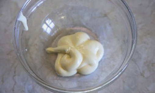 Meng voor de marinade mayonaise, zout en citroensap.