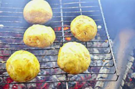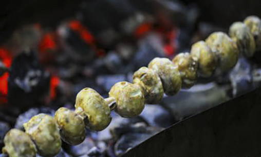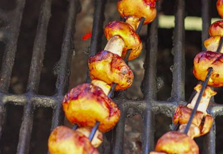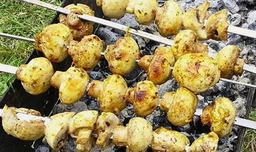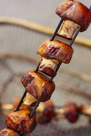 - Prik vervolgens de champignons aan een spies en rooster ze boven hete kolen.
