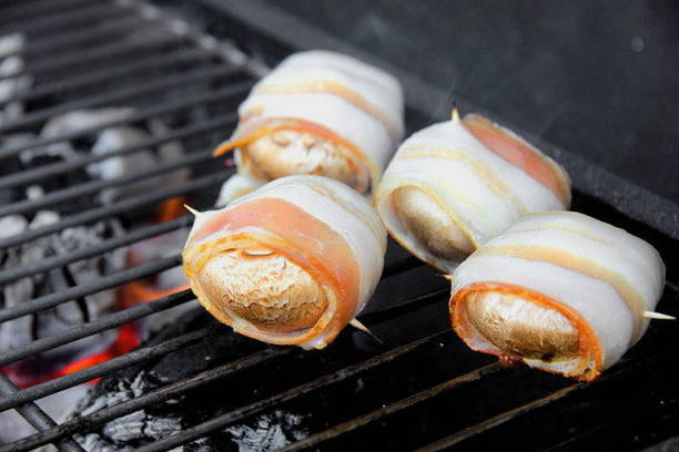 - Een eenvoudig en snel recept voor het koken van champignons in spek op de grill
