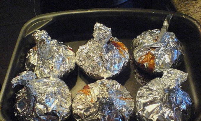 - We wikkelen elke champignonhoed in een apart klein stukje folie.