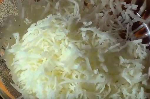 - Rasp de kaas. Voeg de helft van de geraspte kaas toe aan de vulling en roer alles goed door elkaar.