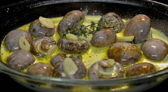 - Hoe eenvoudig en lekker is het om hele champignons in zure room in de oven te bakken?