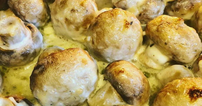 - Heerlijke en hartige champignons gevuld met kip