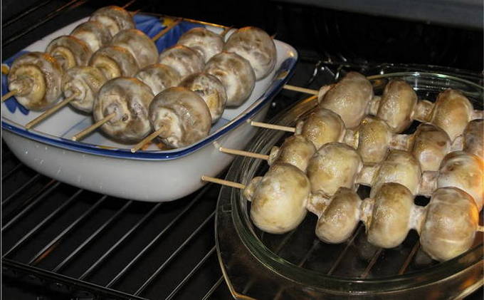 - Stapsgewijs recept voor het koken van champignons op spiesjes in de oven