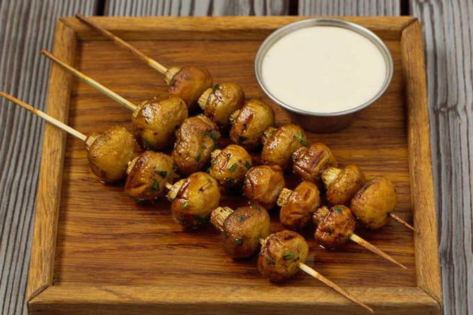 Stapsgewijs recept voor het koken van champignons op spiesjes in de oven