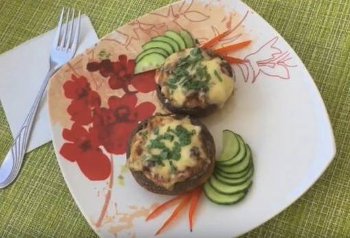 - We bakken de champignons in de oven verwarmd tot 180 graden gedurende 30 minuten tot ze een aangename goudbruine kleur hebben. Het voorgerecht is klaar om te serveren. Genieten van!