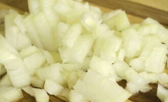 Snijd de ui in kleine blokjes.