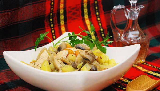 Een eenvoudig en heerlijk recept voor het koken van aardappelen met champignons in zure room