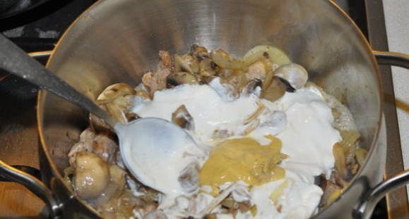 - Voeg alle zure room toe aan de mooie rossige paddenstoelen.