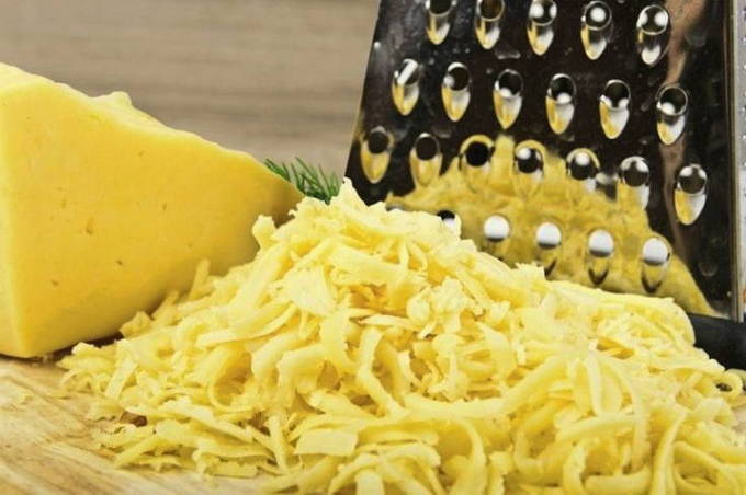- Wrijf tegelijkertijd de kaas op een grove rasp. Je kunt een kleine gedeeltelijk gebruiken.