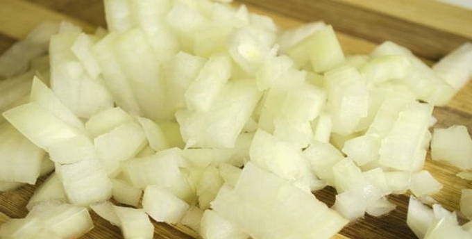 Snijd de ui in kleine blokjes.